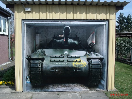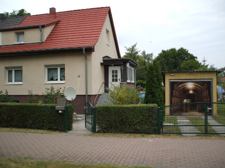 Das ist unsere Doppelhaushälfte mit alten Garagentor
